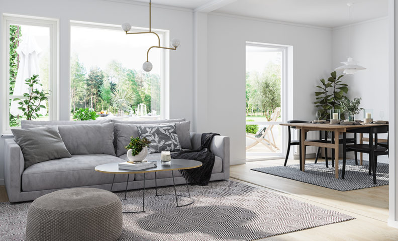 mat – och soffbord i vardagsrum, kök och allrum.